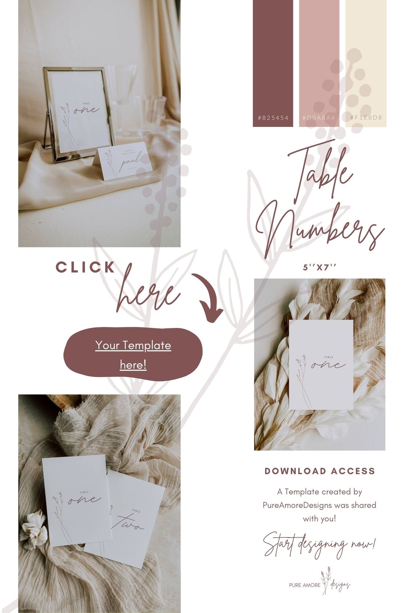 Table Numbers Template 5''x7'' | Modern Romantic Collection